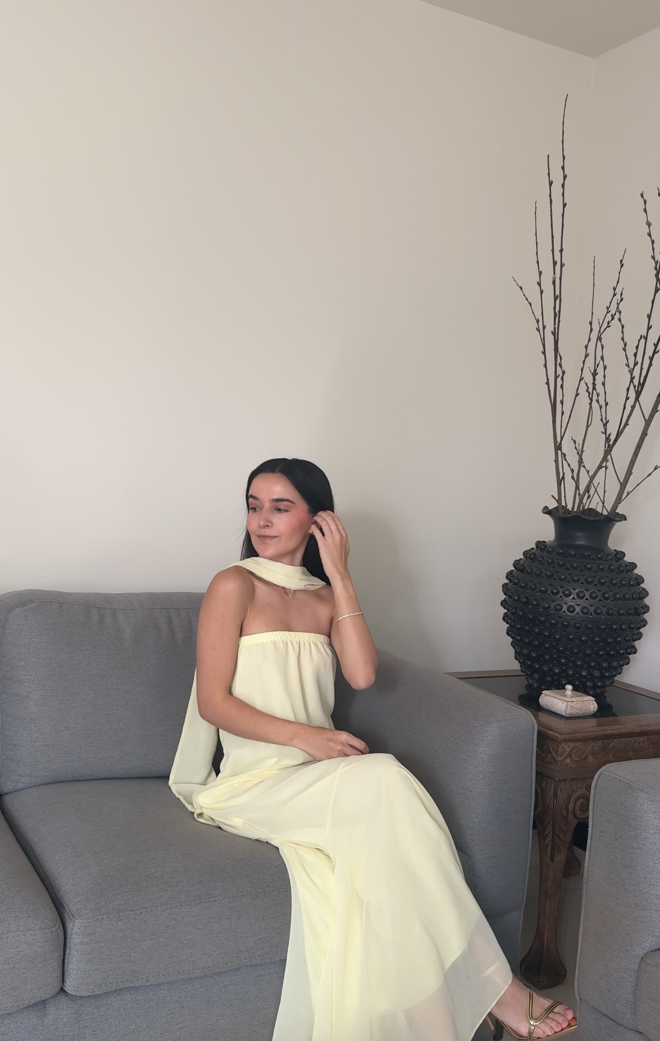 Su espalda descubierta y silueta fluida hasta el suelo evocan un aire romántico y desenfadado, mientras que el vibrante color amarillo añade un brillo natural a tu look. Ya sea para una escapada a la playa, un paseo por la ciudad o unas vacaciones con estilo, el Lily Dress es tu compañero ideal.