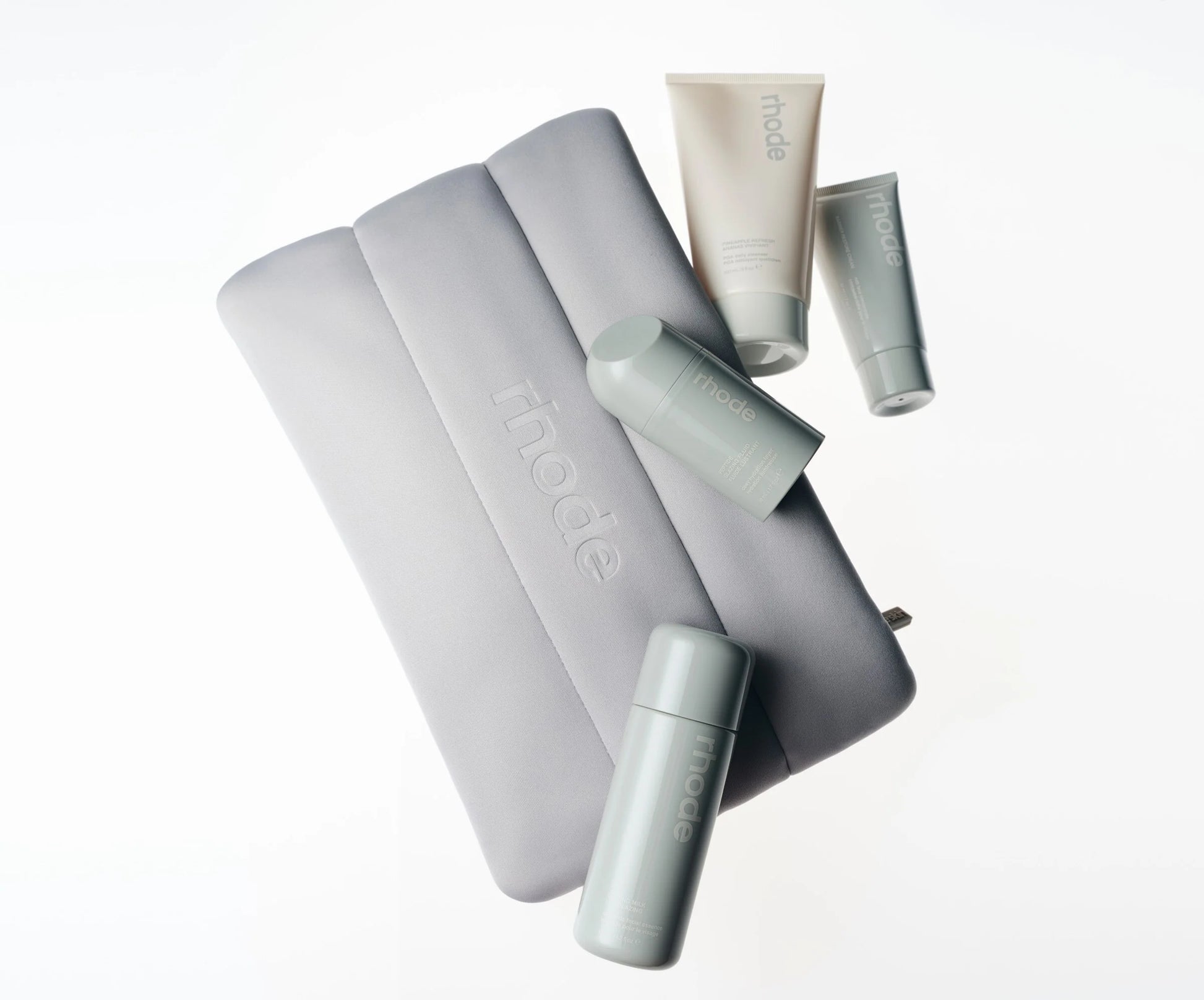 Presenta tu rutina de cuidado de la piel con esta colección integral de Rhode, diseñada para fortalecer y nutrir tu barrera cutánea. Estos cuatro productos de tamaño completo han sido formulados con ingredientes de alto rendimiento que se adaptan perfectamente a tu régimen diario, ya sea utilizados individualmente o en combinación. Aplícalos mañana y noche, mezcla con tu maquillaje o lleva contigo en tus viajes—su textura sedosa y versatilidad los convierten en aliados indispensables. El kit incluye: Pineapple Refresh, Glazing Milk, Peptide Glazing Fluid y Barrier Restore Cream, todo empacado en la icónica bolsa bubble de Rhode para una experiencia de skincare profesional en casa.
